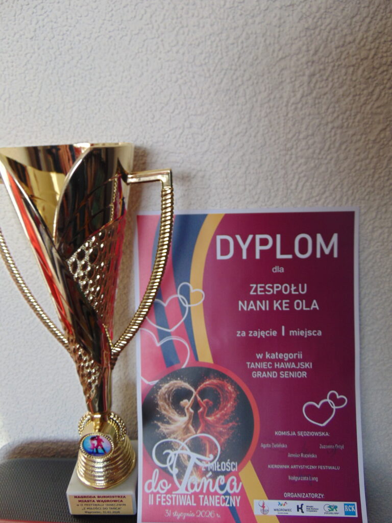Zespół WUTW Nani Ke Ola wziął udział 31.01.2026r. w II Festiwalu tanecznym w OSiR-ze. W kategorii taniec Hawajski Grand Senior zespół zdobył I miejsce oraz nagrodę Burmistrza Miasta Wągrowca. Gratulujemy i życzymy kolejnych sukcesów.